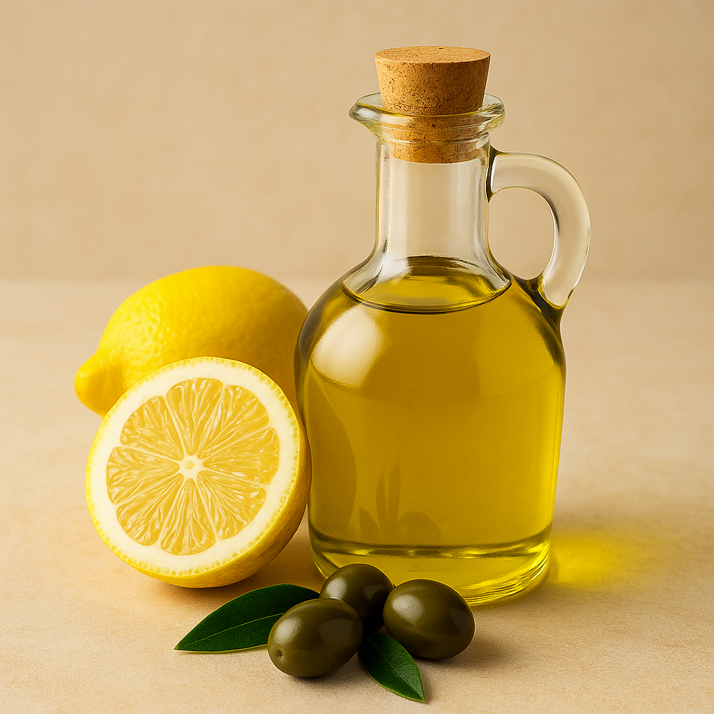 엑스트라버진 올리브 오일(EVOO)은 저온압착으로 추출해 폴리페놀과 비타민 E가 풍부한 오일입니다. 레몬즙은 비타민 C와 구연산(citric acid)이 주성분으로 면역 및 결석 예방 식단에서 자주 활용됩니다.
